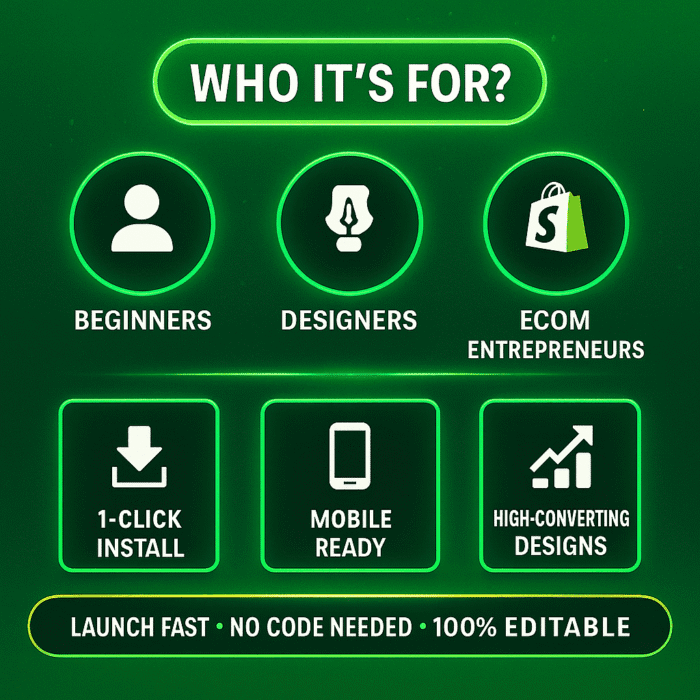 Beginners who want a ready-made Shopify store without coding.